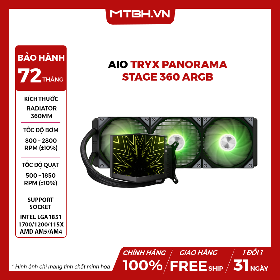 Tản nhiệt nước TRYX PANORAMA STAGE ARGB 360 – Màn hình LCD kép 4.0”, hiệu năng làm mát mạnh mẽ