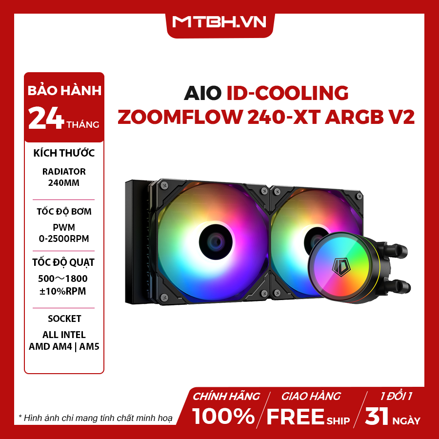 Tản Nhiệt Nước AIO ID-COOLING ZOOMFLOW 240-XT ARGB V2 Black (LED ARGB): Giải Pháp Tản Nhiệt Hiện Đại