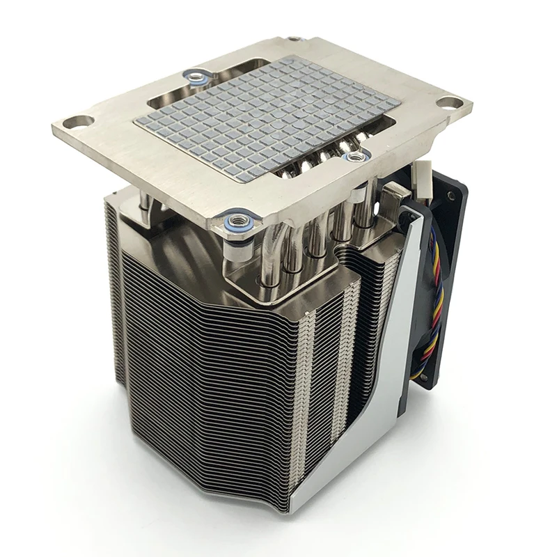 Bộ làm mát vuông lga3647 áp dụng quy trình hàn nóng chảy lại, độ chính xác cao và mối nối chặt chẽ, hàn đầy đủ, tay nghề tốt, cải thiện hiệu suất dẫn nhiệt của CPU đến vây làm mát cpu. Đế nhôm dẫn nhiệt nhanh, Đế nhôm tiếp xúc với khoảng cách bằng 0 có lợi cho nhiệt từ CPU dẫn nhiệt xung quanh lần đầu tiên, gắn vào lõi làm nóng CPU, hấp thụ và dẫn nhiệt mỗi phút
