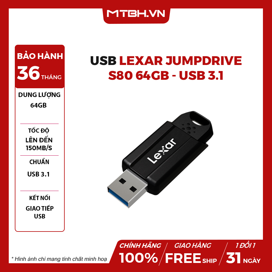 | Tên sản phẩm | USB Lexar 64GB JumpDrive S80 USB 3.1 màu đen |