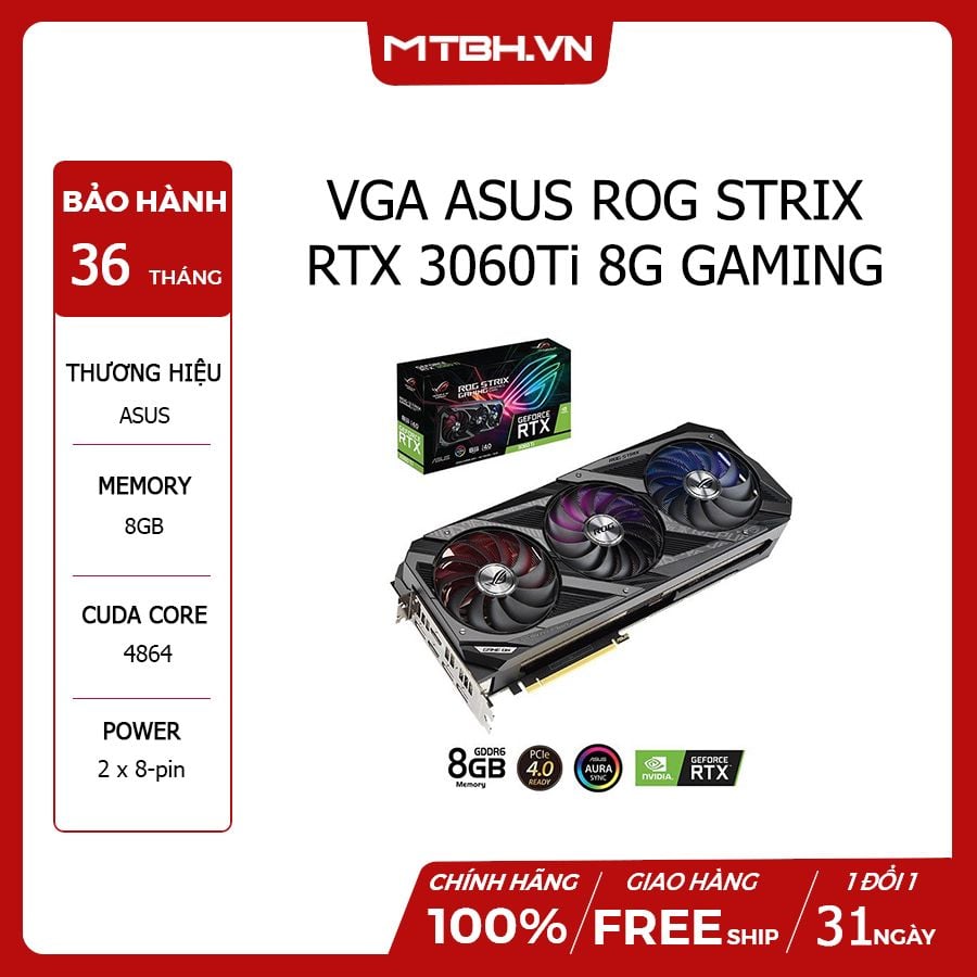 Card màn hình Asus ROG STRIX RTX 3060 Ti-8G-GAMING là một trong những sản phẩm cao cấp nhất của Asus phục vụ cho nhu cầu gaming ở độ phân giải 2K. Đây là card đồ họa sử dụng kiến trúc Ampare hoàn toàn mới cùng nhân RT thế hệ 2, nhân Tensor thế hệ 3, Nvidia RTX IO, VRAM GDDR6 và sản xuất trên tiến trình 8nm được Samsung làm riêng.