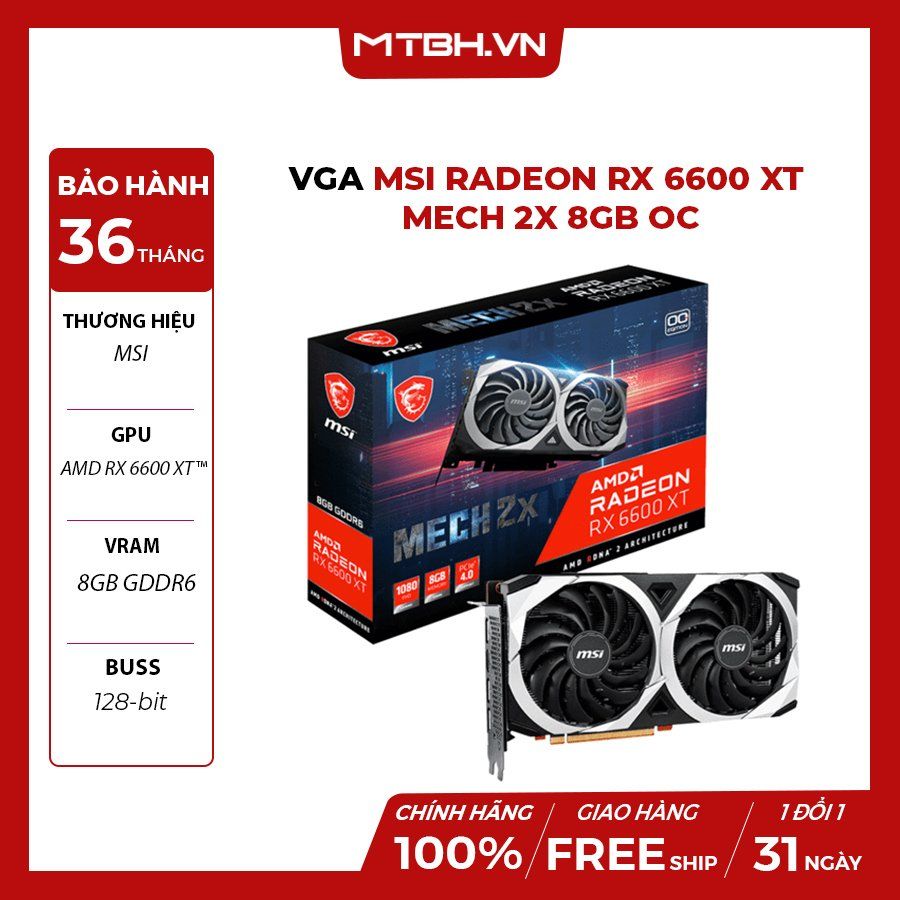 Thông số kỹ thuật chi tiết Card màn hình MSI RX 6600 XT MECH 2X 8G OC/OCV1