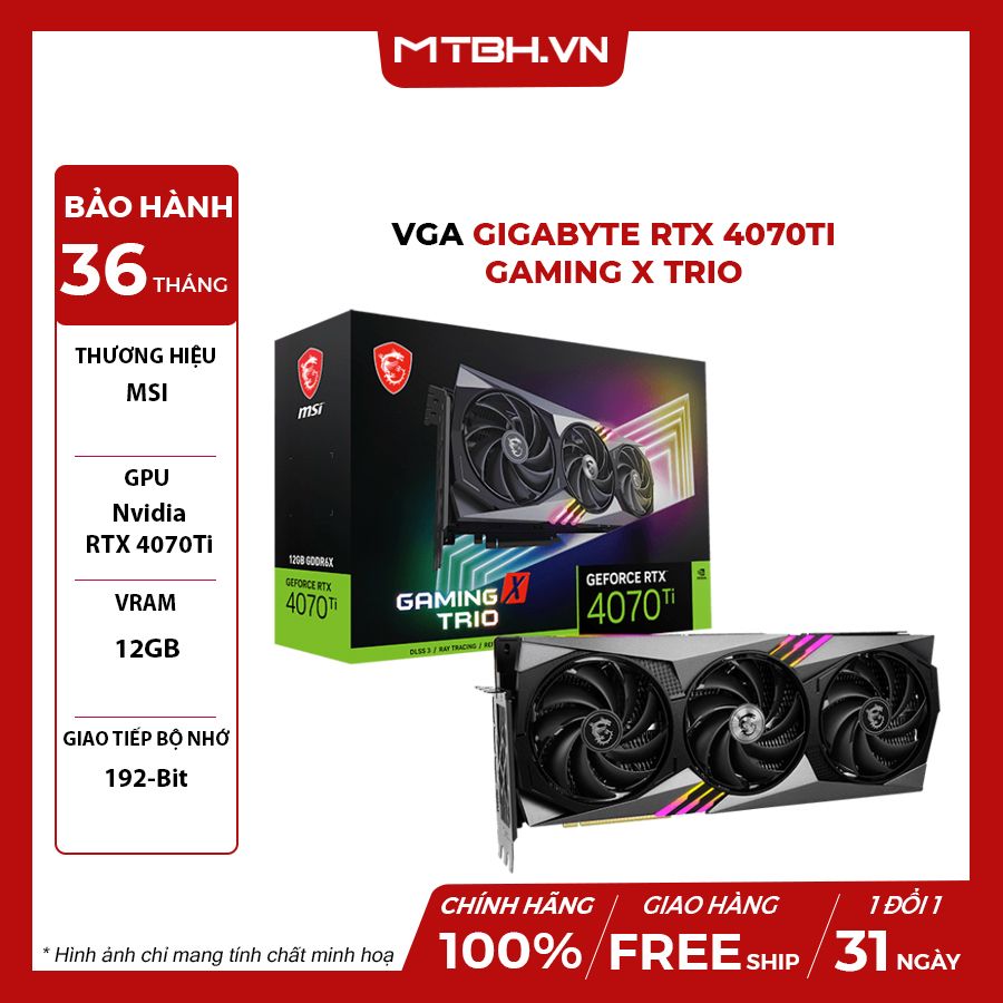 Là “người thay thế” cho model RTX 4080 12GB, RTX 4070 Ti trở lại với một sức nguồn sức mạnh nguyên thủy đã làm nên tên tuổi của dòng GPU cao cấp trước đây. Tự tin là một trong những ông lớn trong ngành sản xuất VGA, MSI đã tiếp nhận và ngay lập tức cho ra mắt chiếc card RTX 4070 Ti thuộc về series GAMING X TRIO với tên đầy đủ, MSI GeForce RTX 4070 Ti GAMING X TRIO.