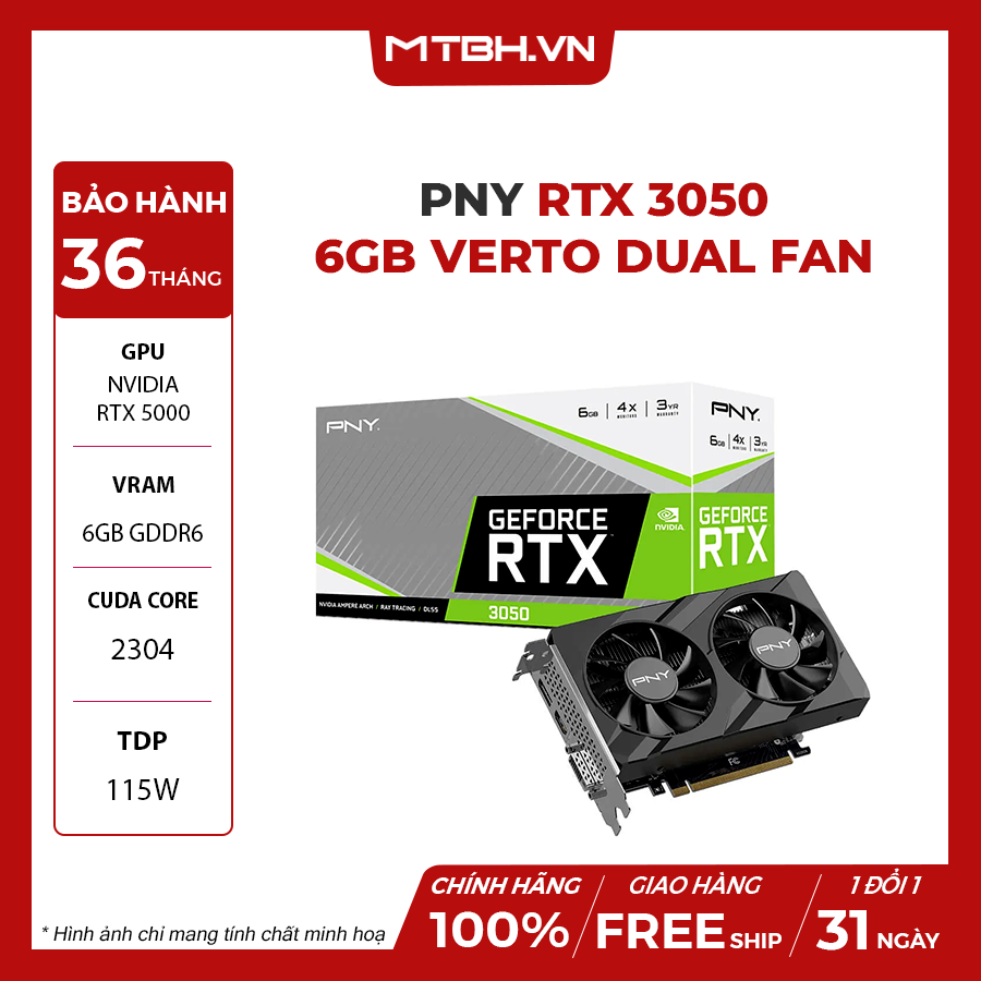 RTX 3050 có 2304 nhân CUDA, 6GB GDDR6 96-bit, TDP: 70 W sẽ tiết kiệm điện năng và khả năng làm mát tối ưu khi làm việc hay chơi game