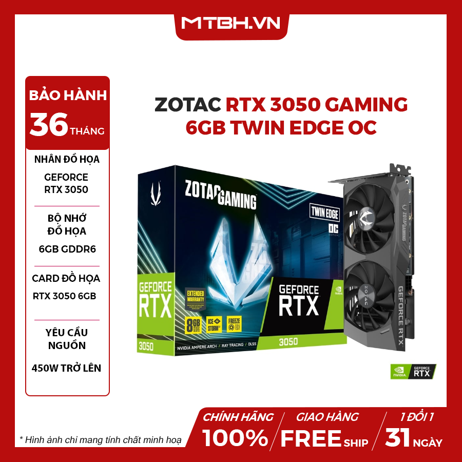 Được trang bị lõi RT thế hệ 2 và lõi Tensor thế hệ 3, ZOTAC GAMING GeForce RTX 3050 6GB GDDR6 Twin Edge OC mang lại trải nghiệm đồ họa đỉnh cao với hiệu suất xử lý vượt trội.